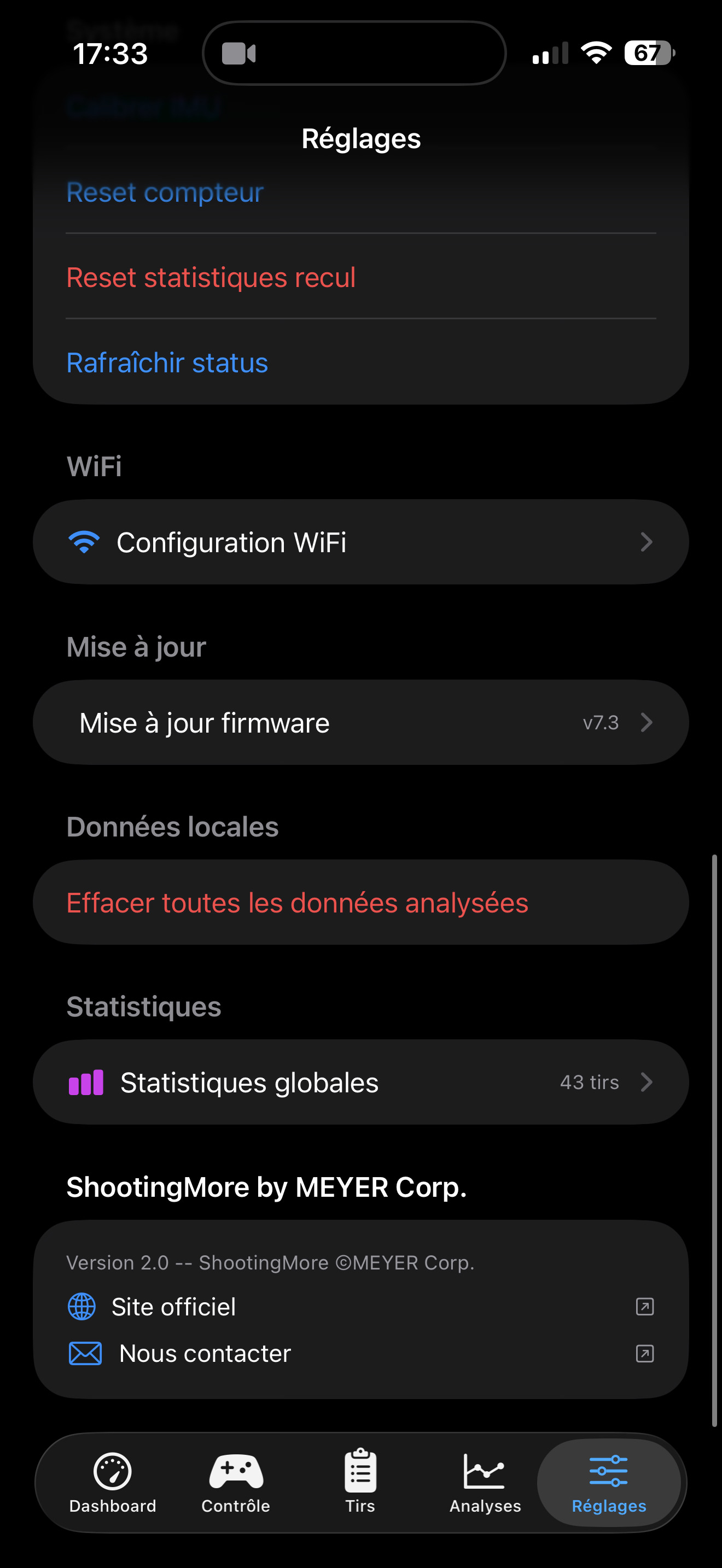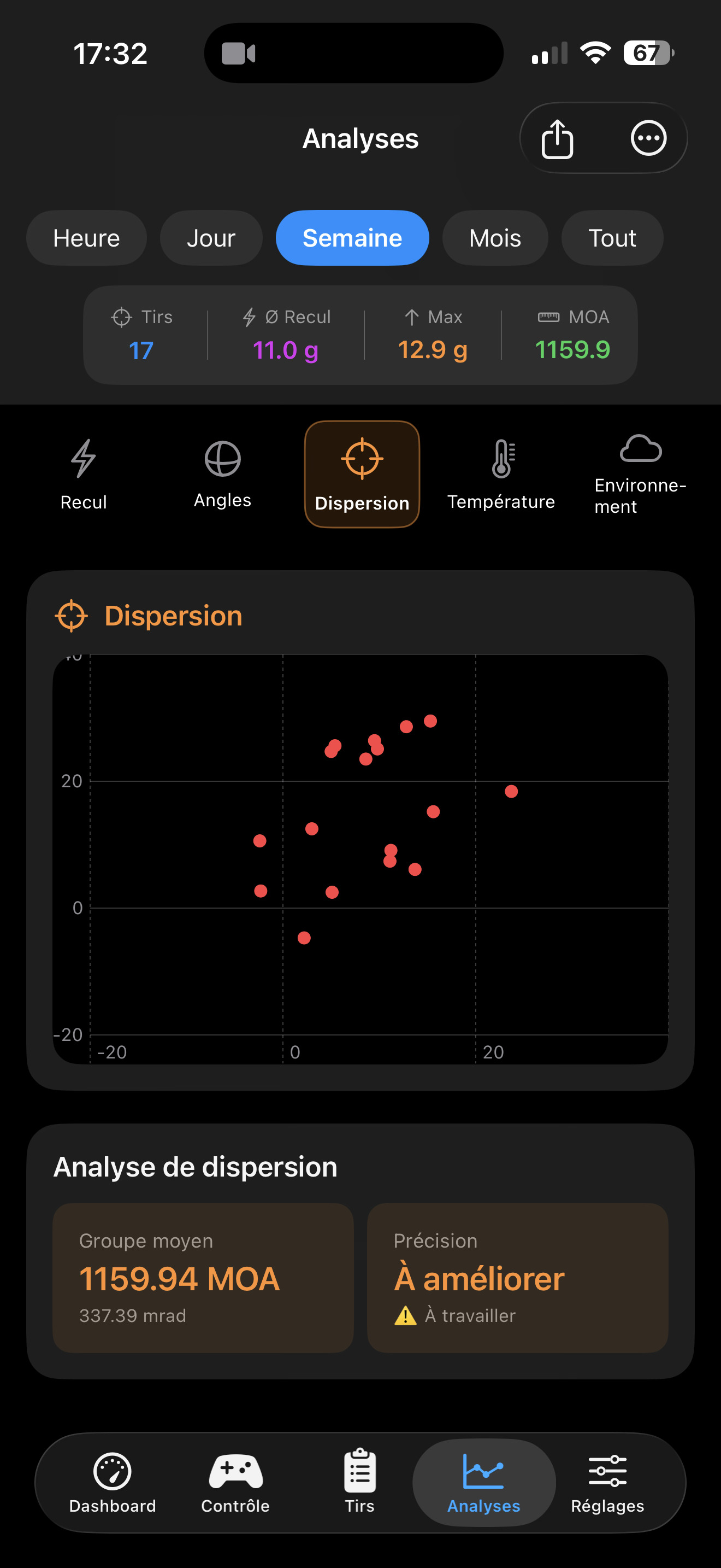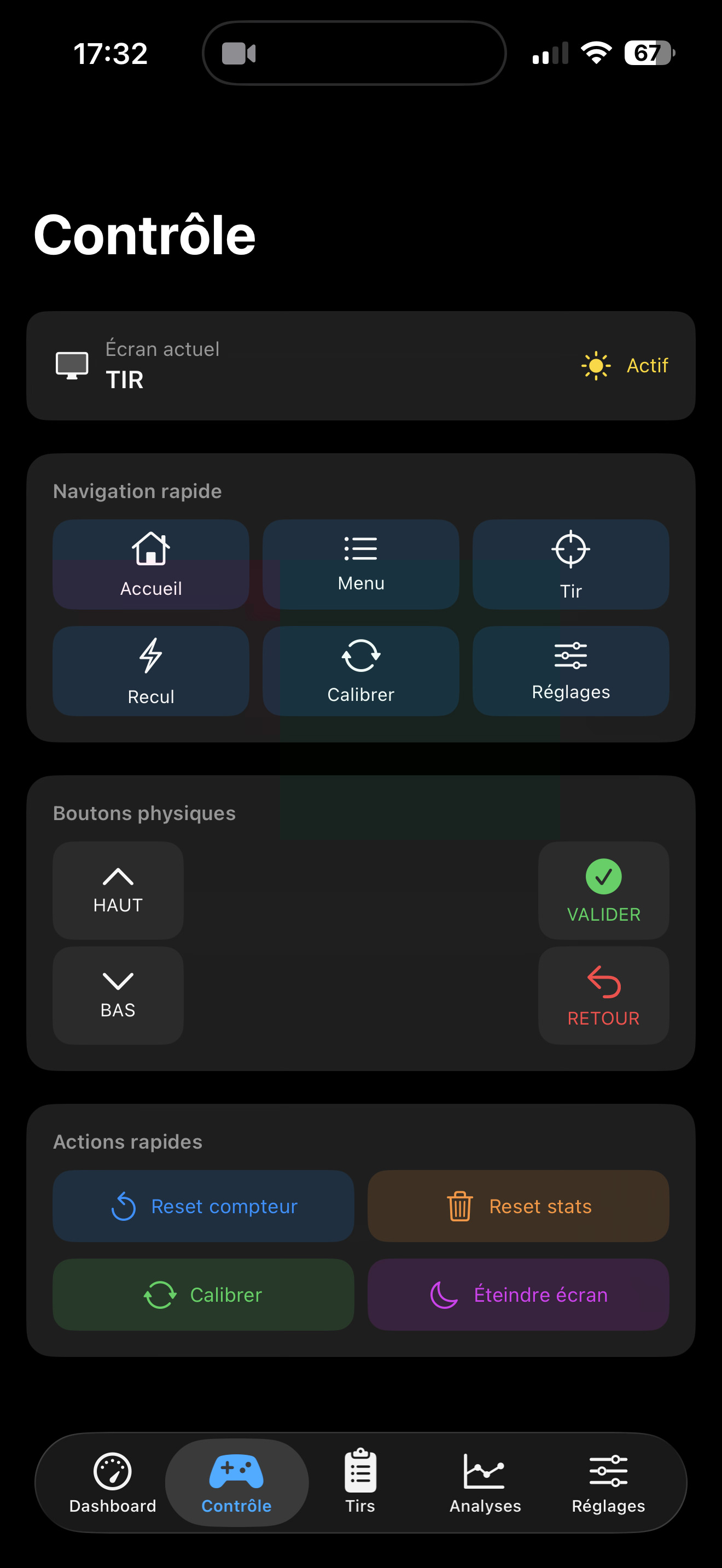 Interface intuitive, données en temps réel, historique des tirs